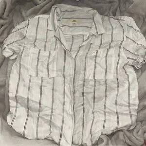 This casual button-down shirt from Thread & Supply features a classic white and black color scheme, perfect for a relaxed yet stylish look. The shirt's design includes a comfortable fit with short sleeves and a timeless button-down style, making it an ideal choice for everyday wear.