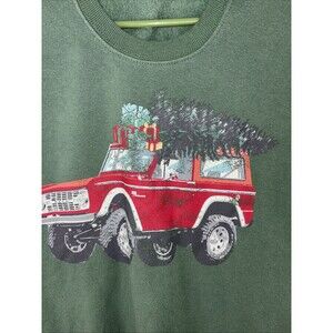 The Ford Bronco Christmas Green Cropped Crewneck in size Small is a festive and stylish sweater perfect for the holiday season. This pullover crew neck sweater in a vibrant green color features a cropped style, making it a trendy and unique addition to any woman's wardrobe. The Christmas theme adds a touch of cheer and charm to this versatile and comfortable piece of clothing.