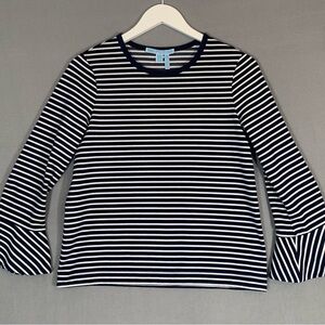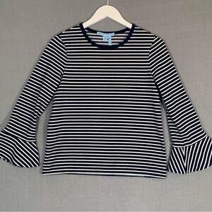 Draper James Blue and White Bell Sleeve Ribbed Blouse Ladies Sz Small