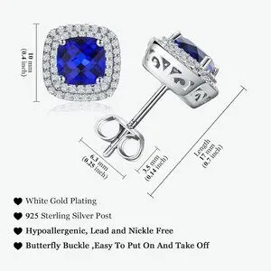 Sapphire Earrings Cushion Cut Women | 925 Sterling Silver | September Birthstone