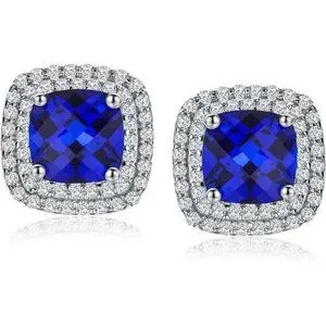 Dazzling Sapphire Sparkle: Cushion Cut Earrings in Sterling Silver