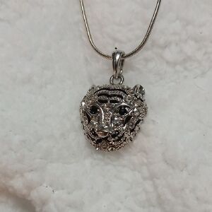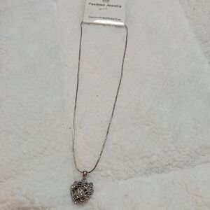 This stunning silver necklace from Fashion Jewelry showcases an intricately designed pendant with a vintage-inspired, oxidized finish. The detailed metalwork creates a captivating, three-dimensional effect, making it a unique addition to any jewelry collection. Its elegant design and monochromatic silver tones ensure it complements a variety of styles and occasions.