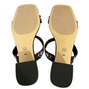 NEW without box Talbots black and white embroidered strappy block heel dress sandals shoes size 8M