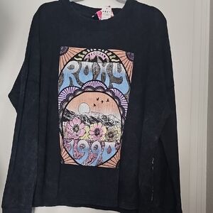 Roxy Black Long Sleeve Tee with Retro Graphic