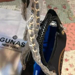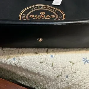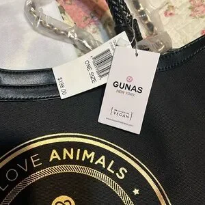 This elegant black tote from Gunas features a sleek leather construction and a structured silhouette, perfect for adding a touch of sophistication to any outfit. The metallic GUNAS logo emblem adds a hint of luxury, making it a standout accessory for any occasion. With its classic design and durable build, this tote is both stylish and practical for everyday use.Super super nice u will loved it and new !