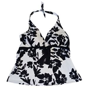 Swimsuits for All Flattering Halter Tankini Top Black and white Floral Womens 16