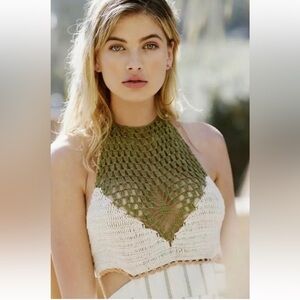 This elegant maxi dress features a stylish green crochet top and a flowing cream skirt. This dress is an absolute head turner! The skirt has an over abundance of material that flows beautifully as you move, while the crochet top and open back, give this dress a sexy, bohemian vibe.