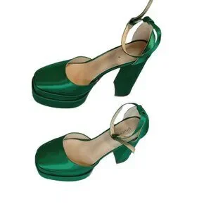 vivianly Women's Platform Chunky High Heels Emerald Green Satin Size 10