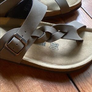 Comfortable brown sandals with braided strap. Perfect for casual wear.