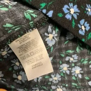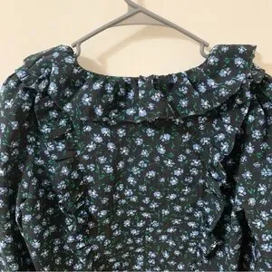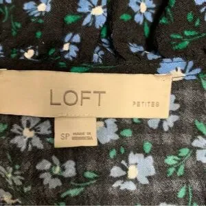 🎁LOFT Floral Print ruffle tie neck Blouse shirt/top Black & Blue petite small SP
