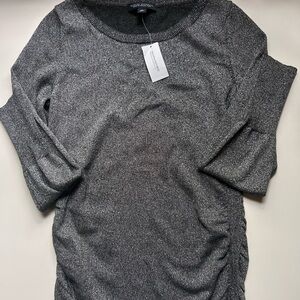 Elegant gray/silver shimmer new with tag sweater. Soft knit fabric. Pullover Perfect for layering. Bunching accent on sides for a classic look.
