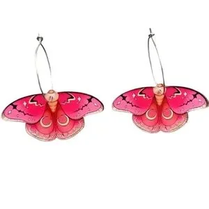 Pretty pink moth acrylic dangle earrings