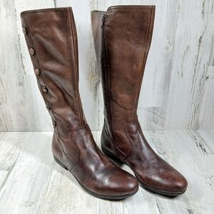 Born Shoes Brown Leather Knee-High Riding Boots Button Detail #1471