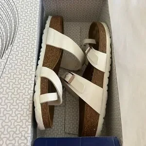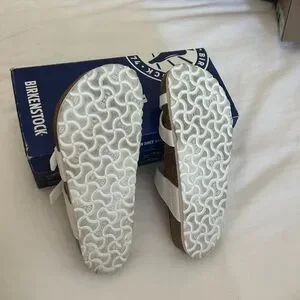 Stylish Birkenstock Mayari sandals with dual adjustable straps in rose gold. Worn a few times but in good condition. Perfect for casual wear.