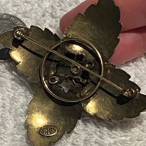 “Signed Regency Vintage Brooch – Autumn Rhinestones, Butterfly/Floral, Japanned Setting, 1950s”