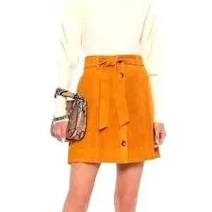 This vibrant orange mini skirt from Francesca's Collections features a stylish A-line cut and a chic tie front detail. Perfect for both work and casual occasions, its bold color and clean design make it a standout piece in any wardrobe.