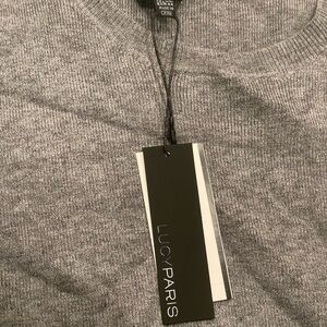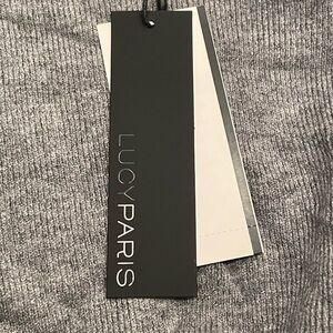 This stylish tank top from Lucy Paris features a sleek sleeveless design in a sophisticated gray hue. Crafted from a knit material, it offers a classic crew neckline and a clean, minimalist look. Perfect for layering or wearing on its own, this top is a versatile addition to any wardrobe.