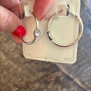 Elegant Brighton silver hoop earrings with intricate detailing. Pretty clear jewel on front of each hoop. Perfect for any occasion. Never worn.