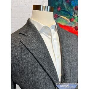 Vtg Polo Ralph Lauren 43R Gray Herringbone Tweed Blazer Sport Coat 3/2 Roll