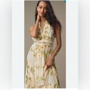 Embrace sophistication with this FARM Rio sundress, showcasing a stylish tie halter and flowy design. The cream color and halter neckline make it an ideal choice for wedding guest attire or resort wear. Its sleeveless silhouette and flowing maxi length offer a graceful and elegant appearance.