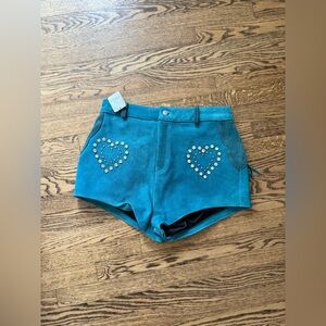 Understated Leather Wanted Teal Fringe Studded Shorts Size XL