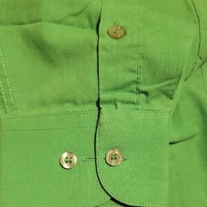 This elegant dress shirt in a vibrant green color is designed with a classic collar and long sleeves, perfect for a polished business-casual look. Crafted from a comfortable material, it maintains a crisp and professional appearance throughout the day.