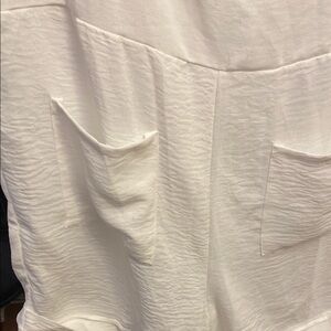 Chic white sleeveless romper featuring convenient pockets. Perfect for casual outings, no size likely a medium to large and no tag or brand lightweight adjustable tie at the shoulders pit to pit is approximately 19 inches top of shoulder to bottom of shorts is approximately 30 inches. This is adorable no stain perfect condition.