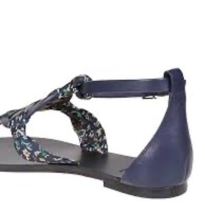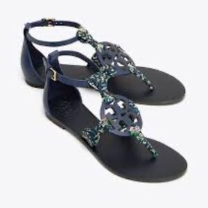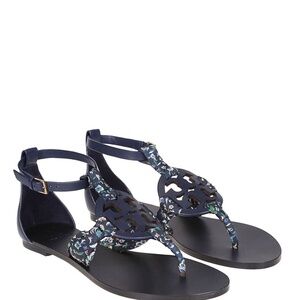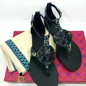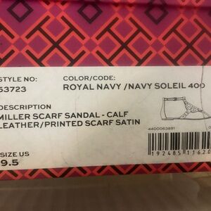 NIB TORY BURCH MILLER SCARF SANDAL, PRINTED SATIN navy