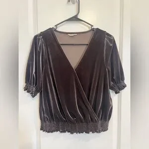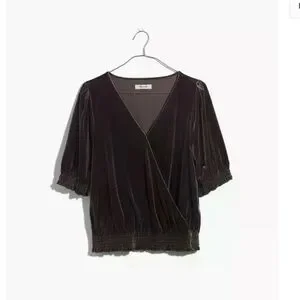 Madewell Smocked Crossover Top Dark Metal SIZE SMALL Velvet Summer Shirt Top