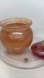 Beautiful resin jar with a round lid. Perfect for decor or storage. Features a warm, translucent color.