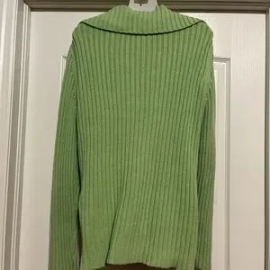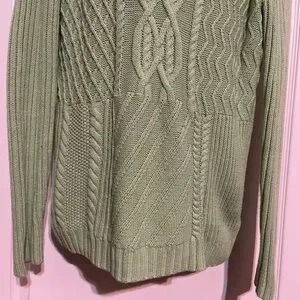 Embrace the classic charm of this Liz Claiborne V-neck sweater, crafted in a vibrant green hue. The intricate cable-knit design adds texture and depth, making it a stylish choice for any occasion. Its medium to heavy weight ensures warmth and comfort throughout the season.