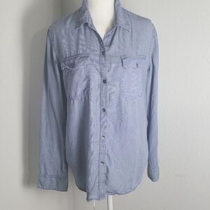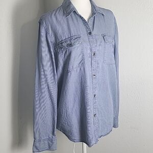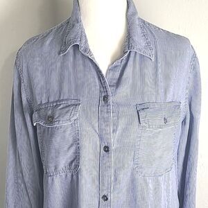Chaps Blue & White Pinstripe Buttondown Shirt, Size XL