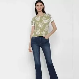 Search words: American Eagle, green, floral, tropical, short sleeve, cotton, tee, t shirt, casual, crew neck, soft, printed, summer