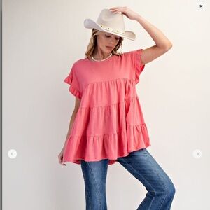 218 🩷 Easel. Strawberry Slub Tiered Tunic