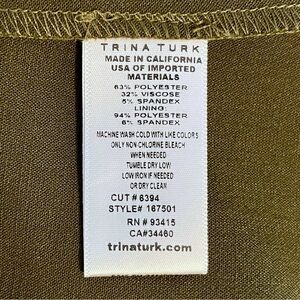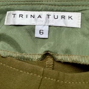 NWOT Trina Turk Vibrant Olive Green High Waisted Side Zip Flared Pants size 6
