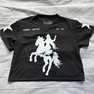 Beyoncé Official Cowboy Carter 2025 Tour Black Cropped Jersey.