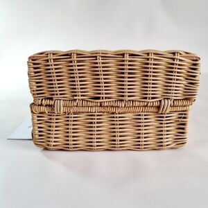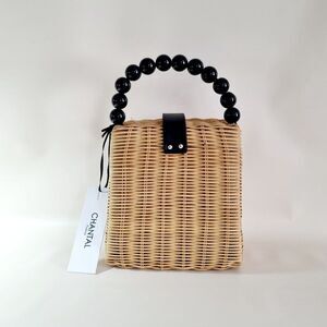 CHANTAL Paris Wicker Handbag - Natural Rattan with Black Bead Handle - NEW