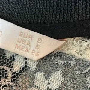 Zara Black and White Stripe Floral Lace Semi Sheer Top Size Small