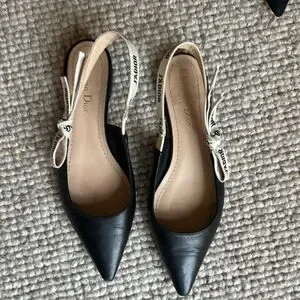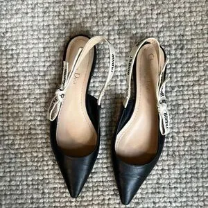 Elegant and stylish, these Dior black leather slingback flats are perfect for any occasion. Featuring a chic design with a comfortable fit, they are a must-have addition to your wardrobe.