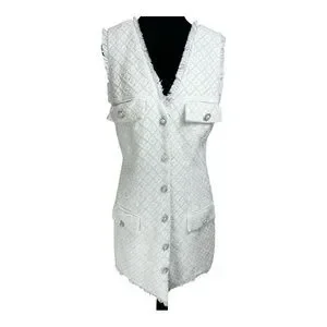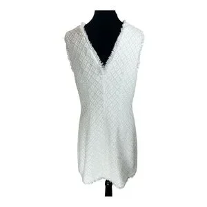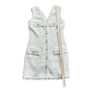 BHLDN Anthropologie Sleeveless Tweed Dress Pearl Embellished Fringed Trim Party