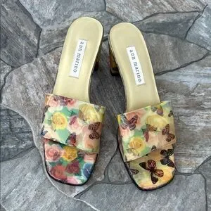 Ann Marino Vitage Holographic Butterfly Rose Open Toe Heeled Sandal