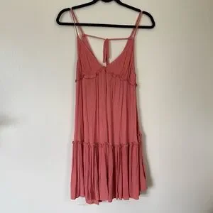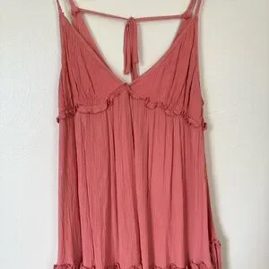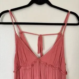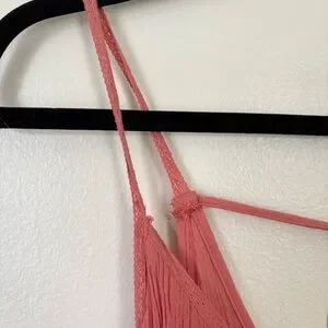 Coral/Pink tiered midi dress. Super flowy. Beautiful lace straps, with a tie at the back. Great condition. Size small.