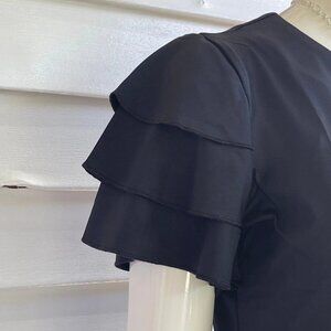 Short sleeves with tiered ruffle styling.