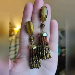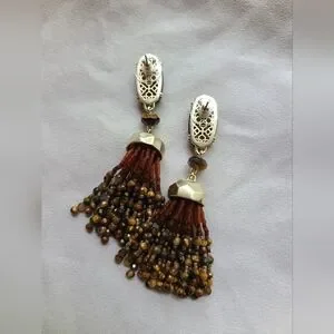 Kendra Scott Tiger's Eye Dove Beaded Tassel Earrings in Gold