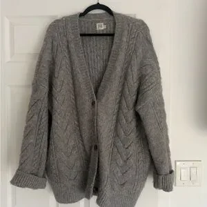 Stay cozy and stylish with this elegant gray cable knit sweater. Perfect for layering, this sweater offers both warmth and fashion.