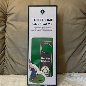 NIB Enjoy a fun and unique golf experience with the Toilet Time Golf Game Set. Perfect for home use, this set features a green color scheme & includes everything you need for a quick game. Ideal for golf enthusiasts looking to practice their putting skills in a playful setting. 1 set. Smoke & pet free home.