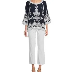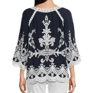 NWT Leo and Nicole Woven Embroidered Scalloped Lace Trim Blouse Size 2X
