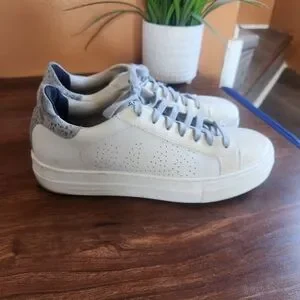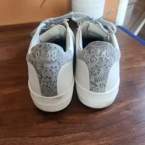 P448 Thea Platform Sneakers White Suede Silver Size 40 Size 9