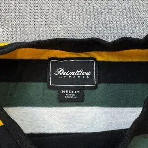This Primitive striped t-shirt combines style and comfort, featuring a bold color palette and a soft cotton-polyester blend. Ideal for everyday use.