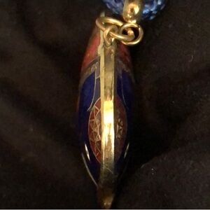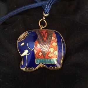 Cloisonné Elephant Pendant- Vintage 1980’s- 19” Cord Necklace- Cobalt Blue/ Gold